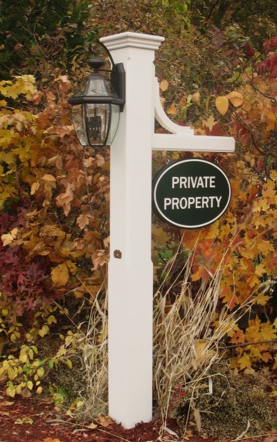 6 1/4" x 6 1/4" x 8' wire ready center channelled cedar post with universal fixture mounting bracket and wrapped below ground level with Post Seal eliminating ground rot...guaranteed. Sidemount cedar post and cedar post cap finished with 2 coats of oil primer and two coats of acrylic latex in white or off white. Post cap fastened with premium waterproof adhesive......$460